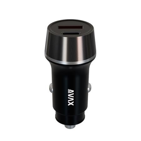 Autós töltő, USB-C, USB-A, AVAX "CC340B", fekete